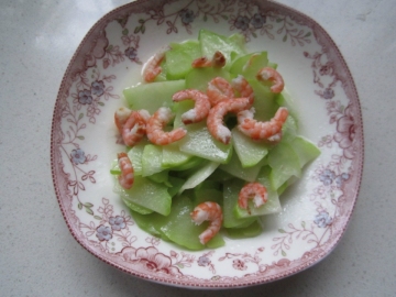 佛手瓜150克,虾100克,油、盐、鸡精、葱姜适量。