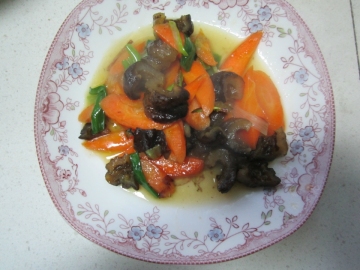 海参200克,胡萝卜、葱、油、盐、鸡精适量。