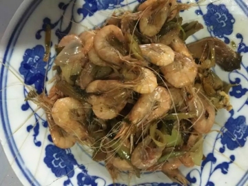1、锅烧热后下入生姜、咸菜炒蔫;、2、然后下入虾倒入老酒,炒熟后装盘就可以。、虾、生姜、老酒、咸菜、虾、生姜、老酒、咸菜、虾、生姜、老酒、咸菜