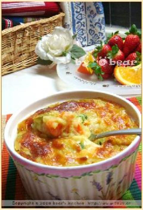 这个跟以前做的焗土豆泥不太一样,比较稀一些,但是还是很好吃呢!