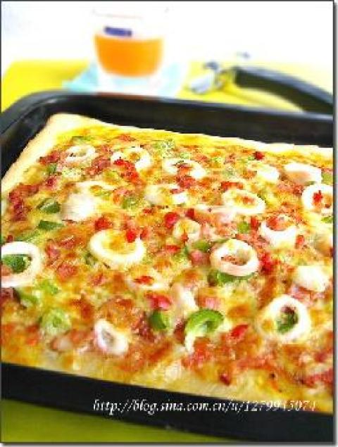 高筋面粉,青椒,双汇熏肠,洋葱,鱿鱼,红辣椒