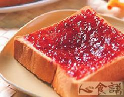1、作法a:取一片土司,放入烤箱烤至微黄,取出用鉅齿刀,在表面划切成格子状,均匀涂抹果酱即可食用。
