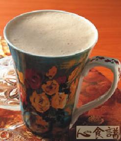 3.将作法的2单品热咖啡和作法1的热鲜奶同时沖入咖啡杯中即可。