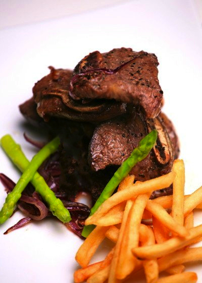 主料:嫩小牛扒(又叫牛仔骨),红葡萄酒,盐,黑胡椒,洋葱,芦笋,黄油各适量。