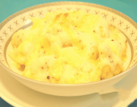 主料:菜花500克,奶酪100克,面包屑20克,牛奶300克,