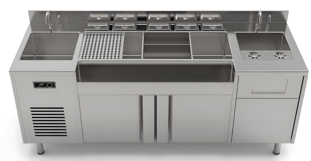 家庭用户同样对耐用性赞不绝口。一位调酒爱好者在社交平台晒出对比图:“木质台面用半年就开裂,不锈钢的扛住了我‘暴力调酒’——砸冰、摔杯都没留下痕迹。”他特别提到,调酒台配备的嵌入式冰槽和排水口设计,让制作复杂鸡尾酒时不再手忙脚乱,“以前调一杯马天尼要擦半天台面,现在全程干净利落”。这类基于使用痛点的真实反馈,正成为产品打动消费者的关键。