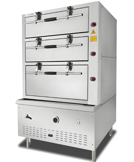 "一柜搞定200人份餐食"——连锁食堂的刚需,推动三门蒸柜向"大容量+模块化"演进。麦大厨产品支持多层蒸盘组合,下层300mm加深舱室可容纳整只帝王蟹,单柜可满足200人份米饭/面点蒸制需求;捷客迅模块化设计允许独立更换蒸汽发生器,维护时无需整机停机,在某企业食堂的连续作业测试中,日均处理食材量突破2.5吨。