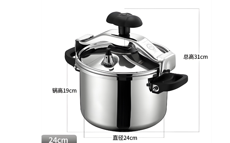 工作压力(限压阀): 这是日常烹饪时的维持压力。目前主流商用不锈钢高压锅的额定工作压力通常在70kPa至90kPa之间(约0.7-0.9公斤力/平方厘米)。这个压力区间足以快速软化食材,同时保证锅体结构的长期稳定性。