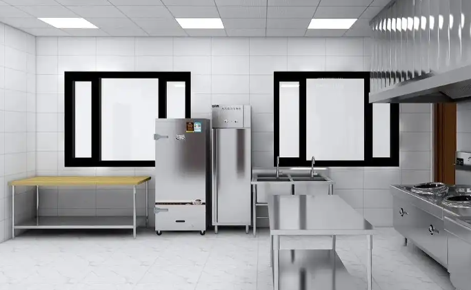 长边2.8m分布冰箱、备餐区、双眼灶、装盘区;