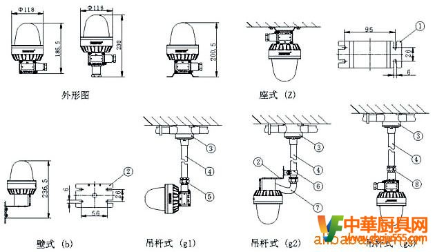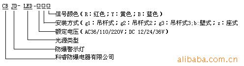 若需订购防爆警示灯,定额电压为交流220v、安装方式为吊杆式3、信号颜色为黄色,则订货型号为“cbjd-led/ac220g3y".